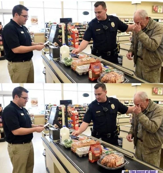 In a moment of unspoken understanding, Officer Miller pulled out his own credit card and began to pay for the groceries, including the extra items. The total cost of the food wasn’t much, but the gesture spoke volumes. It wasn’t just about feeding the elderly man for that day; it was about providing him with a sense of dignity and humanity.